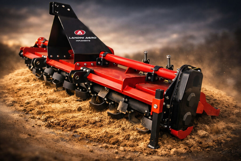 The Landini Agro Multi Speed Rotavator is a premium-grade agricultural implement engineered to meet the diverse needs of modern farming operations. Designed for efficient and reliable soil preparation, this multi-speed rotavator delivers superior performance in pulverizing, levelling, and tilling soil across a wide range of farm types — from small holdings to larger crop fields. Built with precision and durability in mind, the Landagro Multi Speed Rotavator stands out for its adaptability and robust construction. Its multi-speed gearbox allows farmers to adjust the rotor speed based on soil conditions — whether working in dry, compact ground or softer, wet terrains — ensuring optimal tillage results with every pass. This flexibility not only improves the quality of the seedbed but also enhances overall field efficiency. A heavy-duty side gear drive system, housed in an oil bath, ensures smooth power transmission from the tractor’s PTO to the rotor blades. This minimizes friction and heat buildup, increasing the lifespan of mechanical components and reducing maintenance frequency. The gearbox design also contributes to smoother operation under load, helping save fuel and reduce wear on the tractor itself.